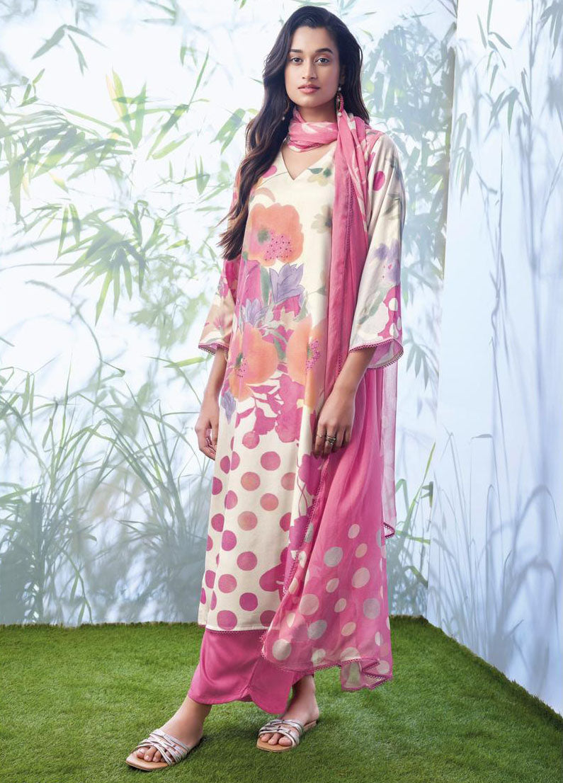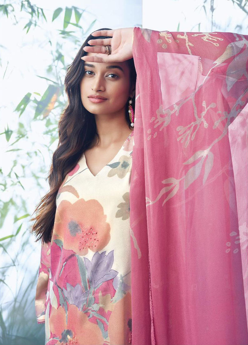 Ganga Unstitched Pink Woolen Pashmina Winter Suit for Ladies