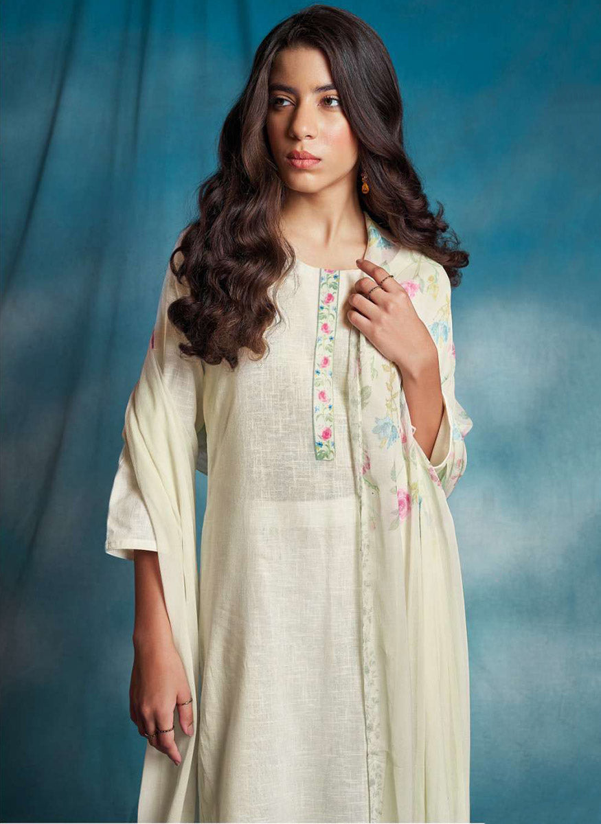 Ganga Off-White Unstitched Cotton Linen Printed Salwar Suit Material