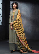 Ganga Woolen Pashmina Green Winter Suit Dress Material for Women