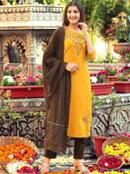 Green Cotton Silk Fully Stitched Suit with Banarasi Dupatta
