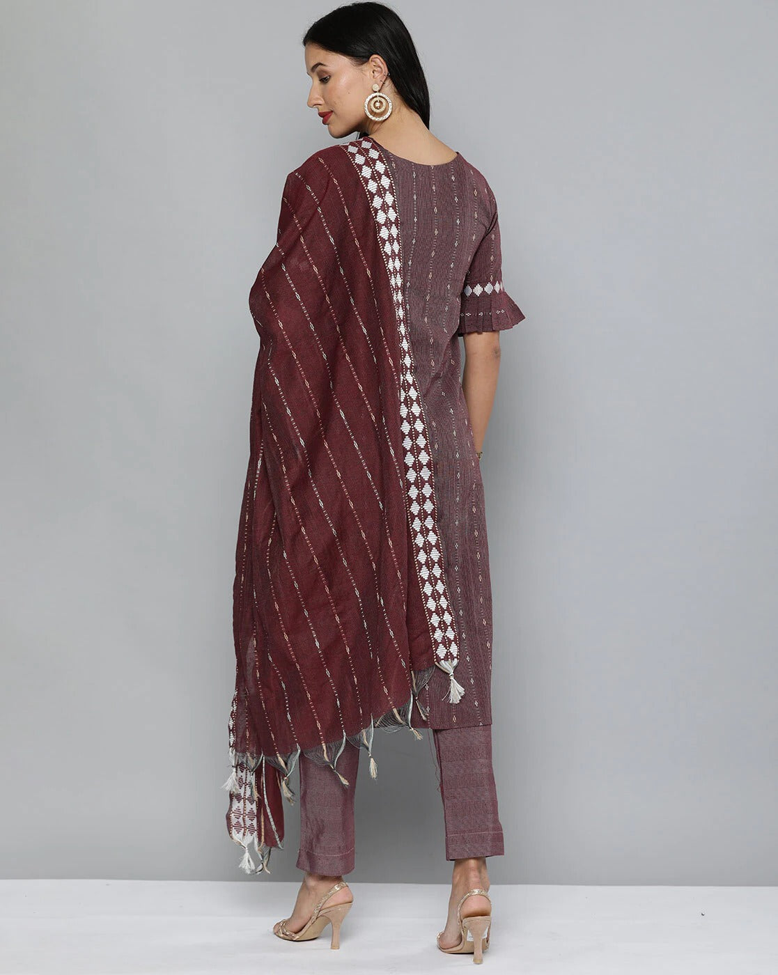 • Cotton Dupatta Has Weaving Tassels Border