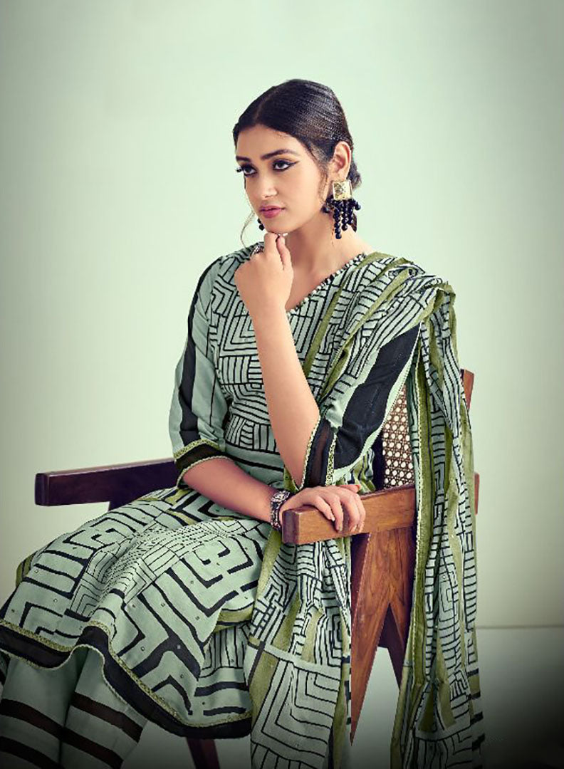 Green Unstitched Pure Cotton Printed Suit Material for Women