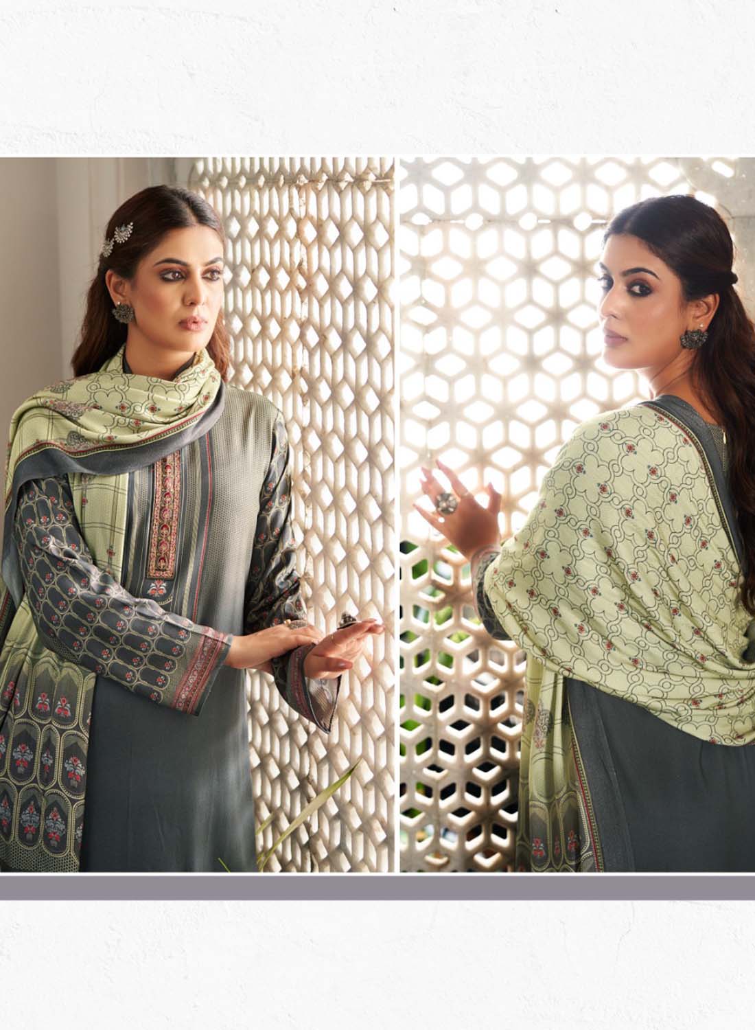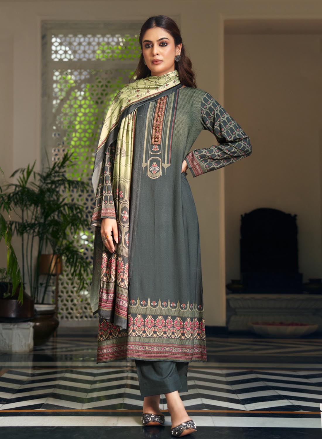 Grey Unstitched Pashmina Winter Suit Dress Material for Women