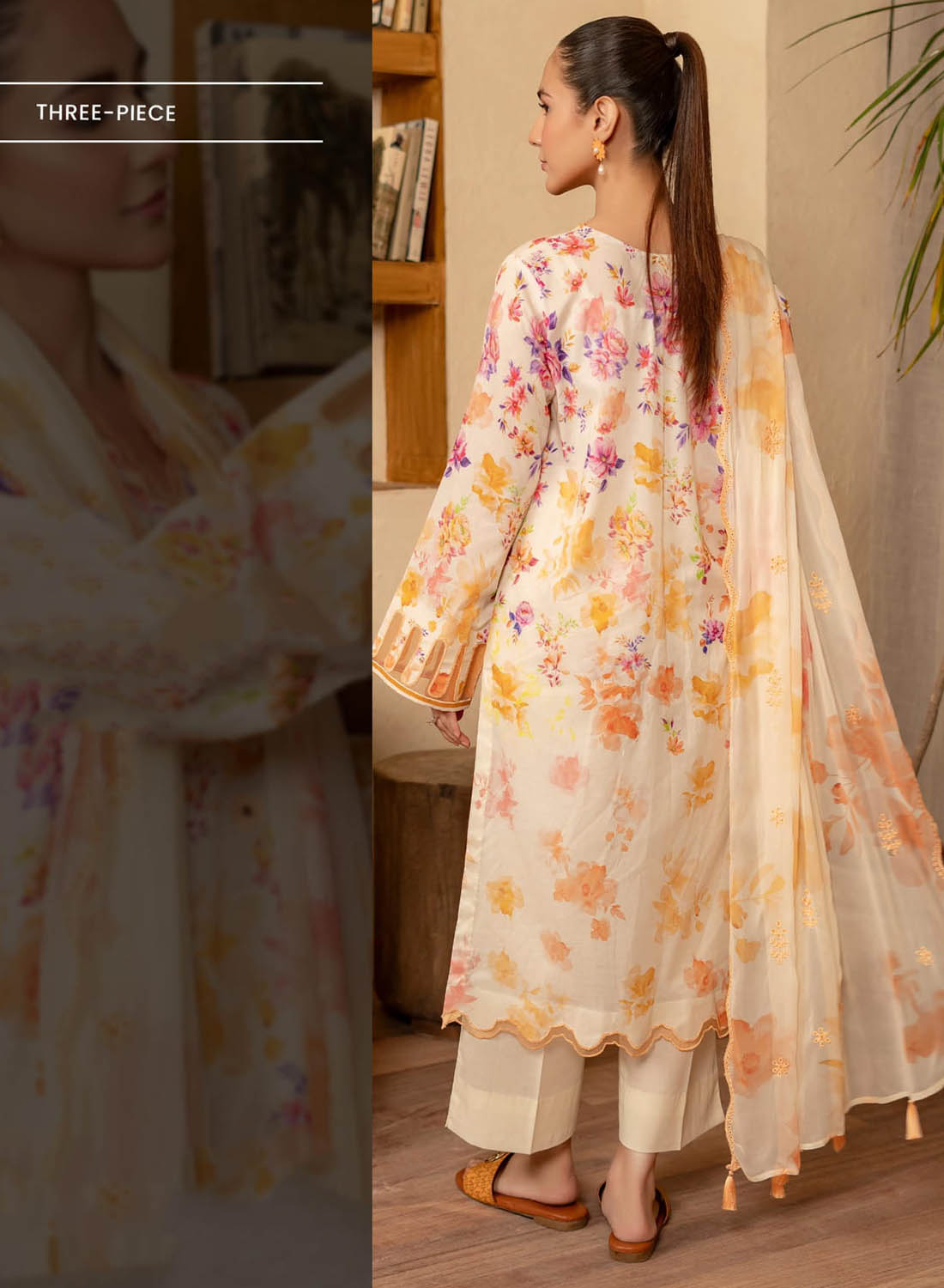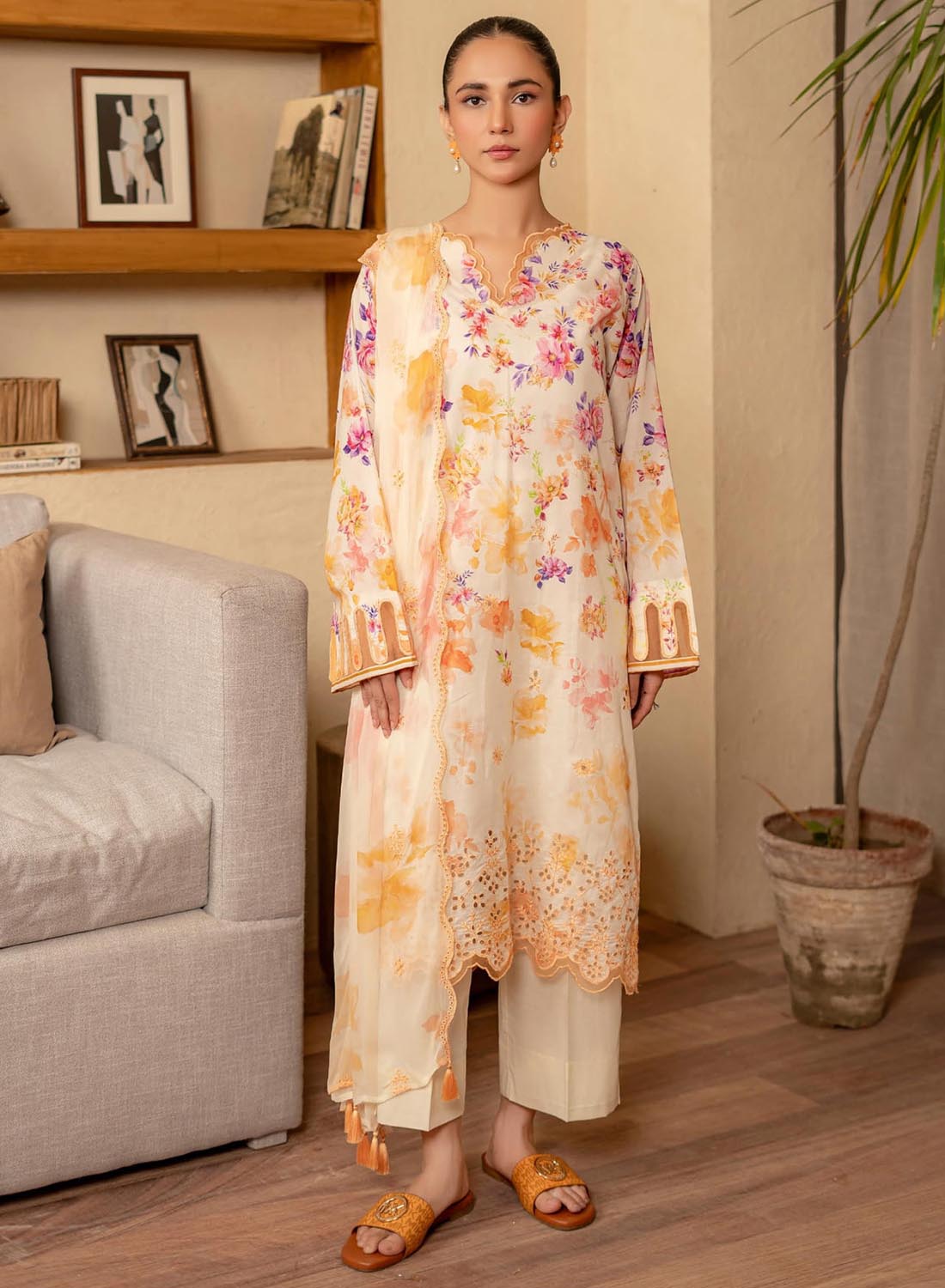 Gulljee Unstitched Cream Pakistani Pure Lawn Suit with Chiffon Dupatta