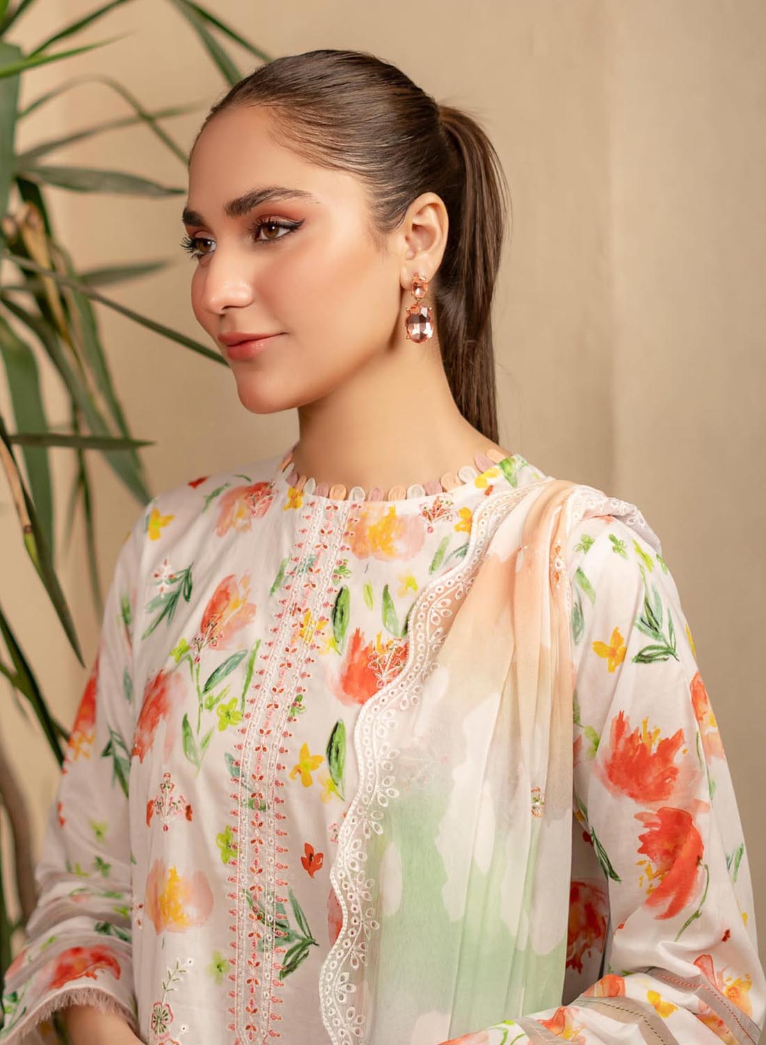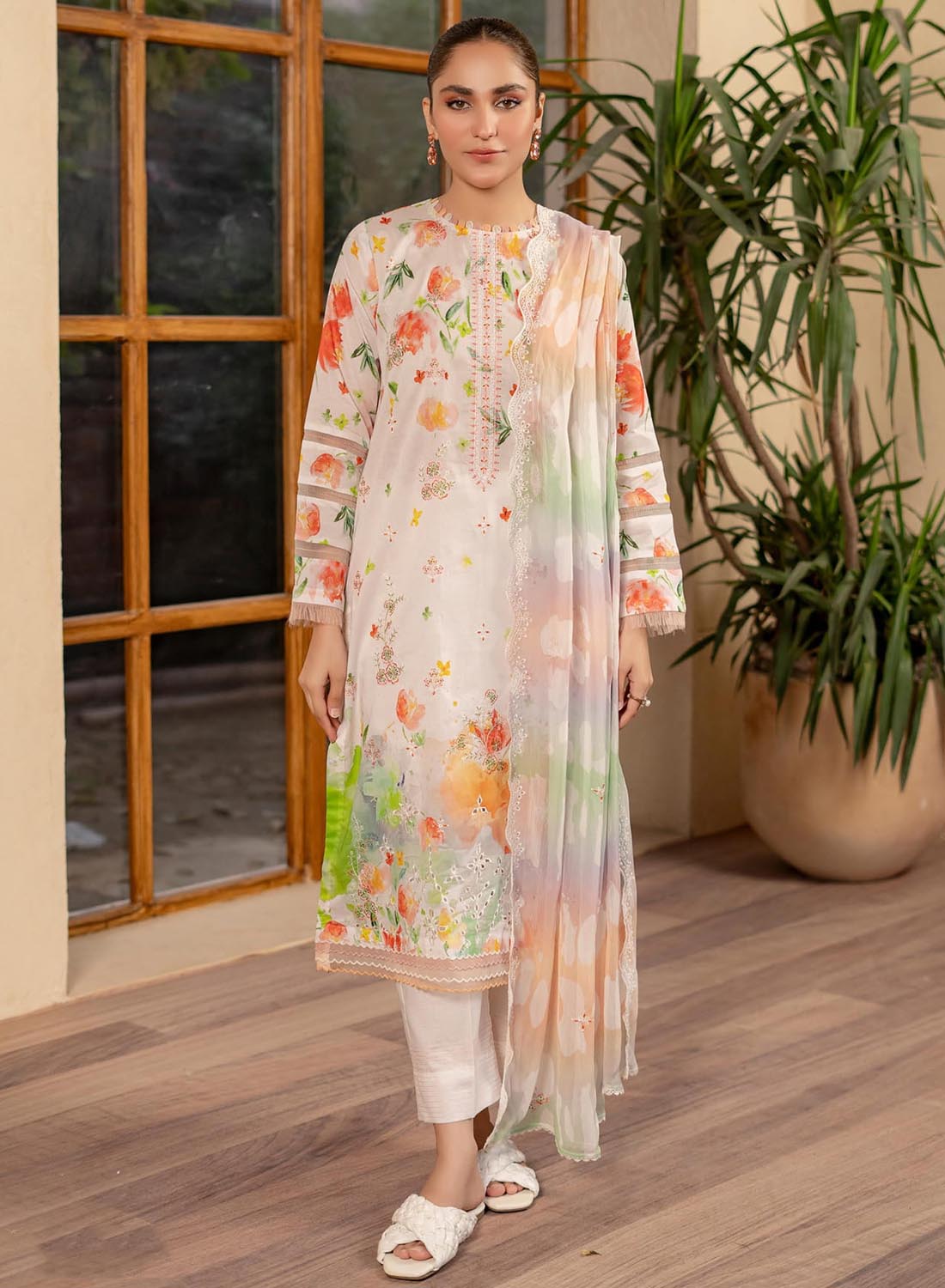 Gulljee Unstitched Pakistani Pure Lawn Suit with Cutwork Chiffon Dupatta