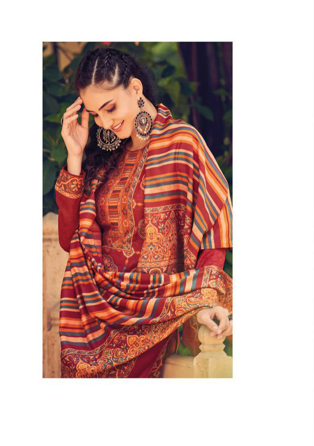 Handloom Pashmina Maroon Ladies Unstitched Winter Suit Set