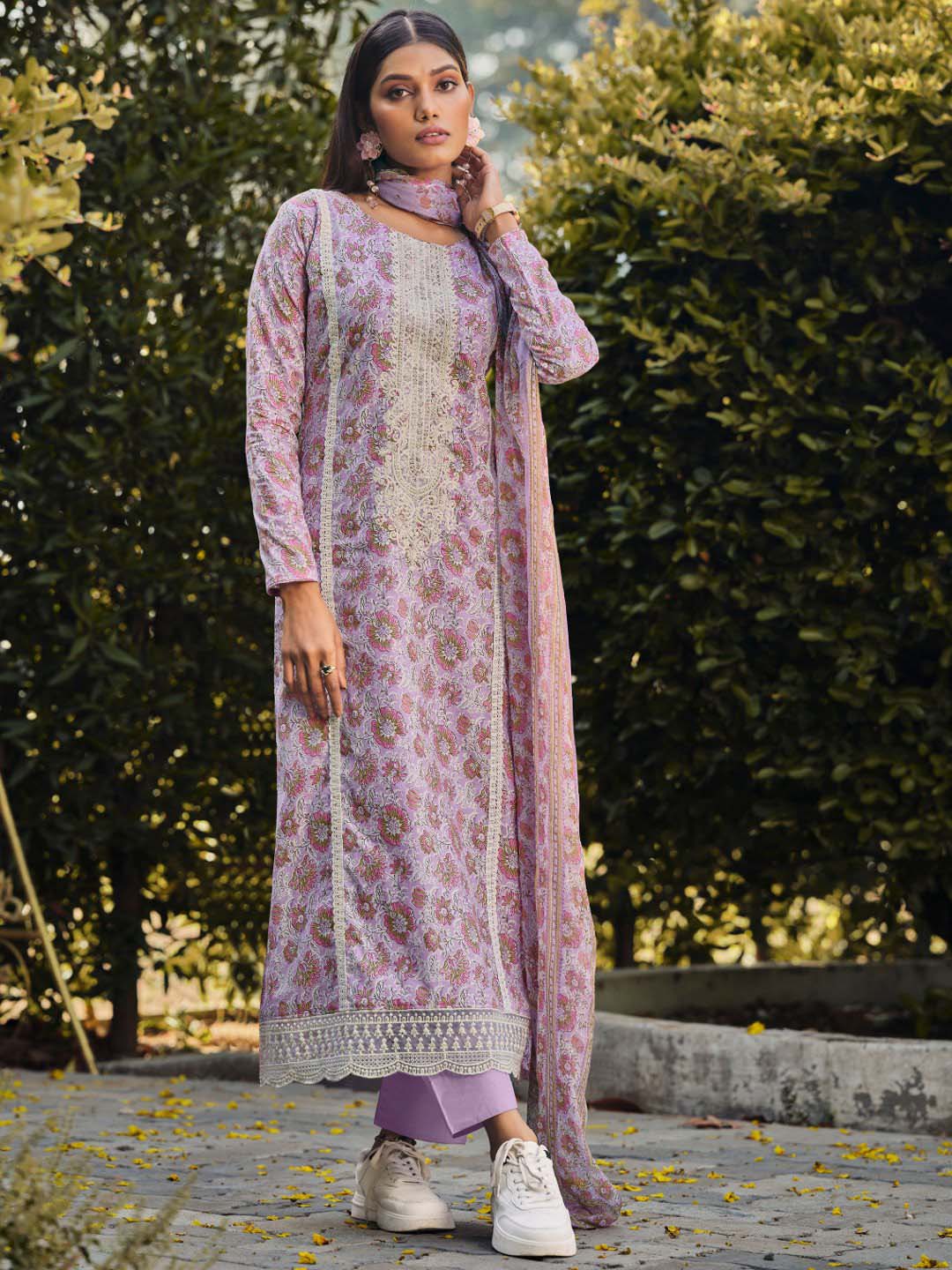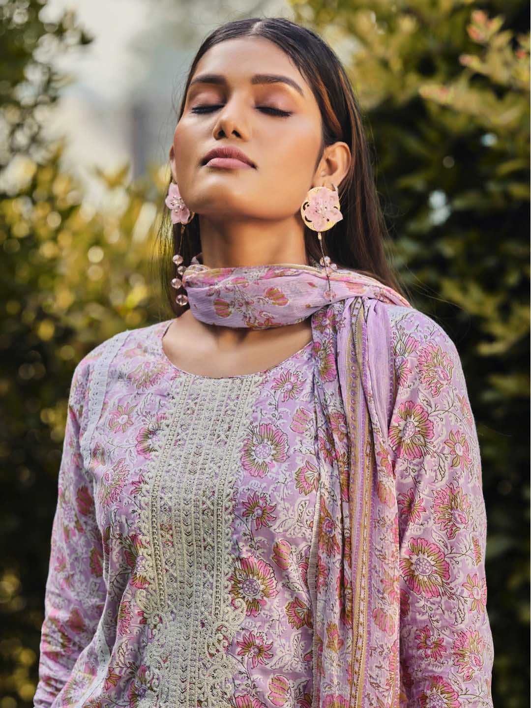 Ibiza Lawn Cotton Embroidered Unstitched Women Suit Set Lavender