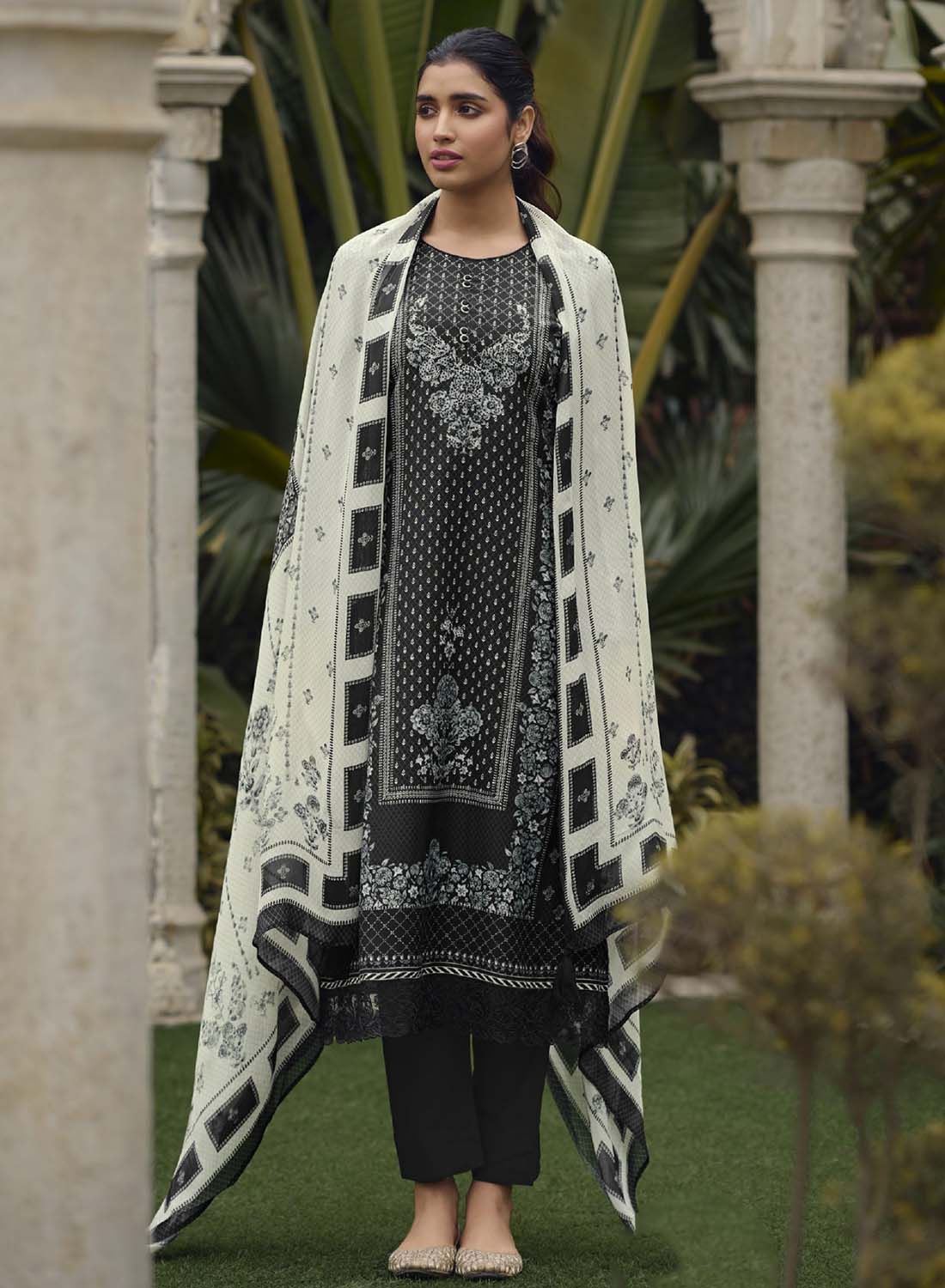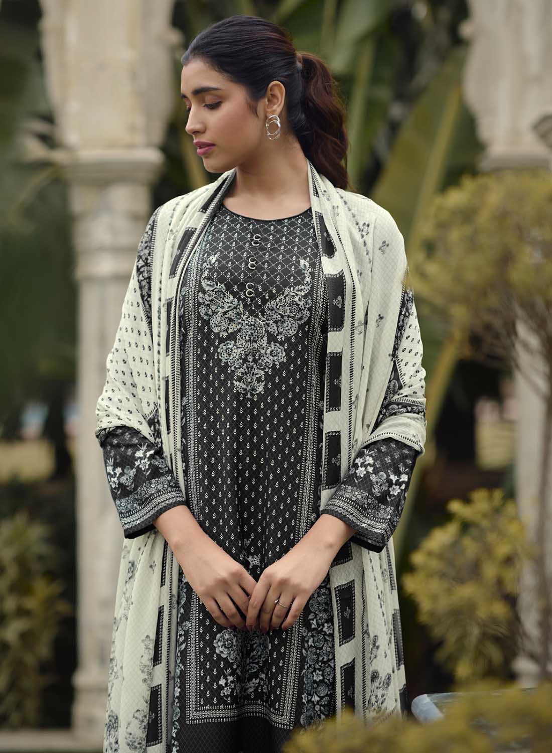 Ibiza Pure Muslin Black Unstitched Suit Dress Material for Women