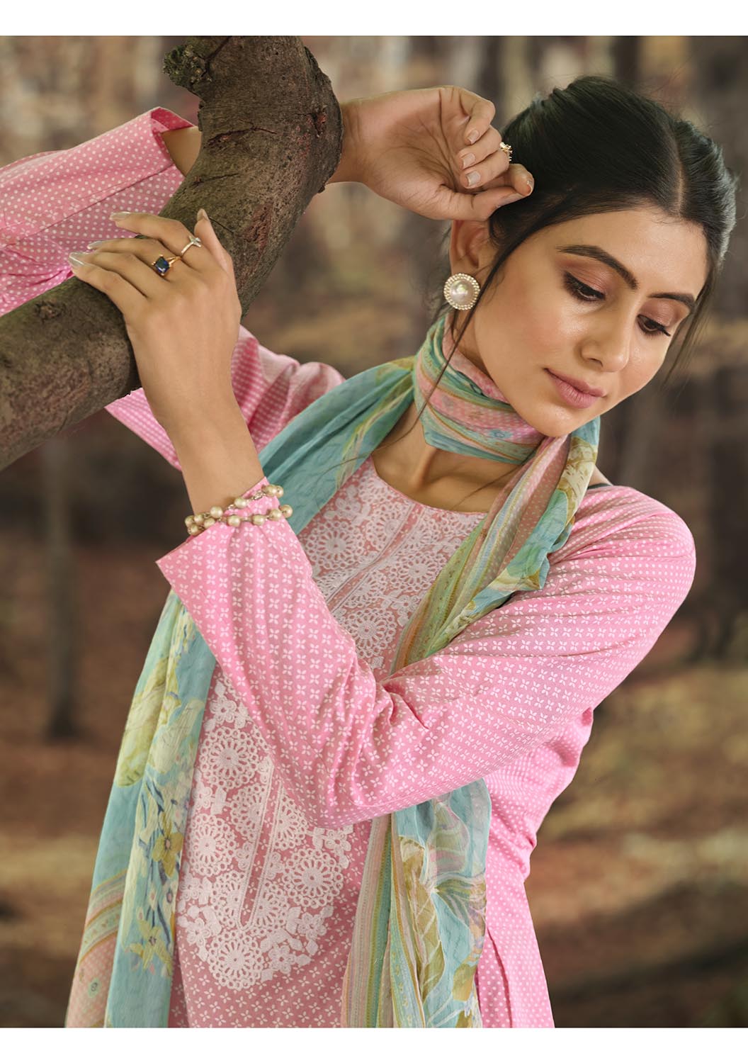 Ibiza Unstitched Women Pink Suit Set with Embroidery