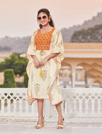 Kajal Style Cotton Yellow Kaftans with Fancy Embroidery for Women