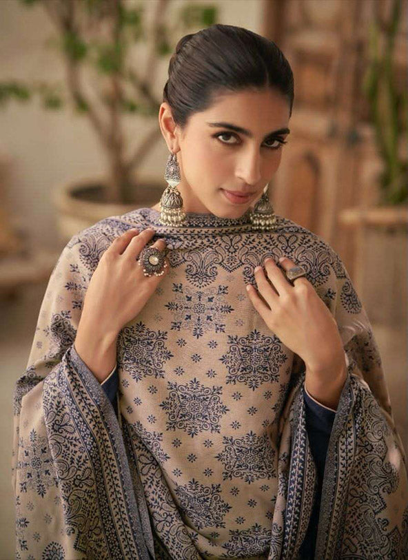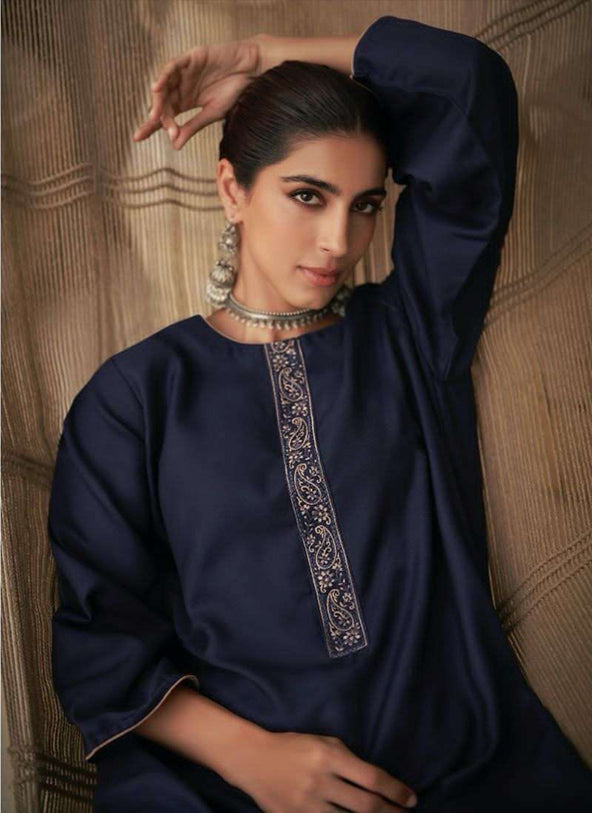 Kesar Embroidered Unstitched Blue Pashmina Winter Suit for Ladies