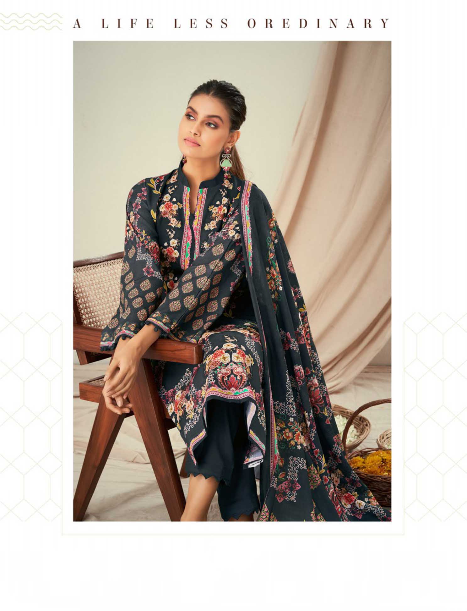 Kesar Lawn Cotton Unstitched Pakistani Print Suits Black