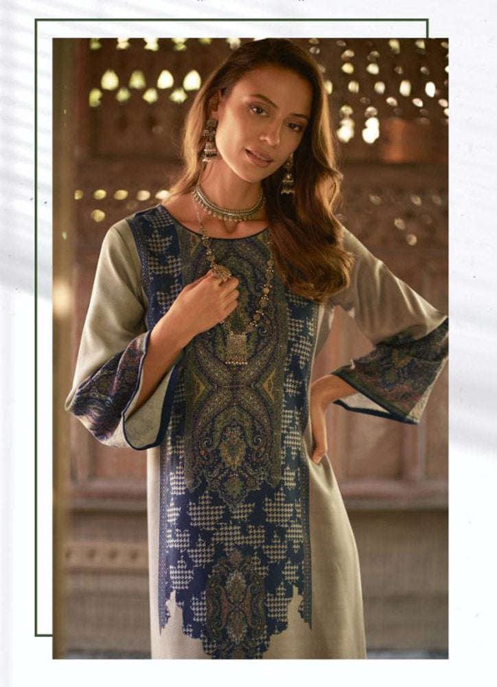 Kesar Pure Pashmina Unstitched Blue Printed Winter Suit for Ladies