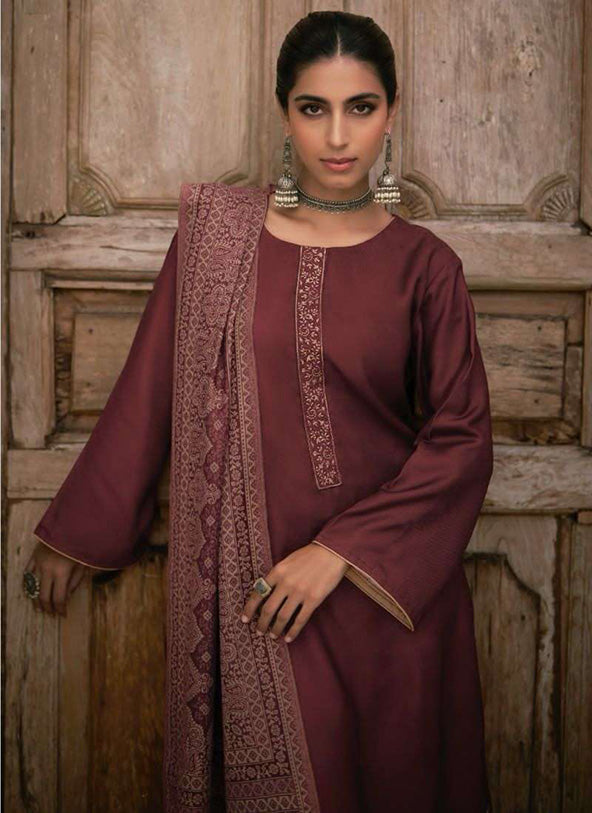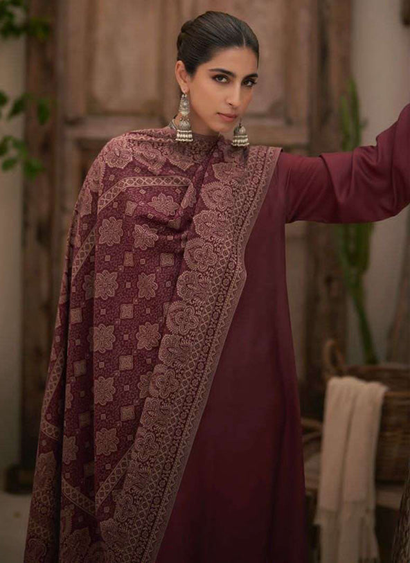 Kesar Unstitched Maroon Pashmina Winter Suit Material for Ladies