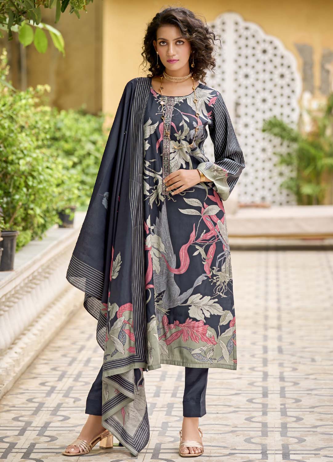 Kilory Blue Unstitched Muslin Salwar Suit Dress Material for Women