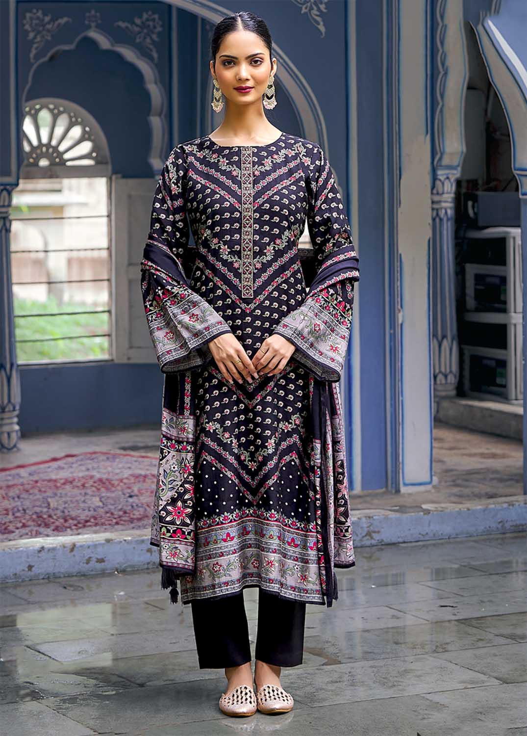 Kilory Party Wear Muslin Black Unstitched Women Suit Dress Material
