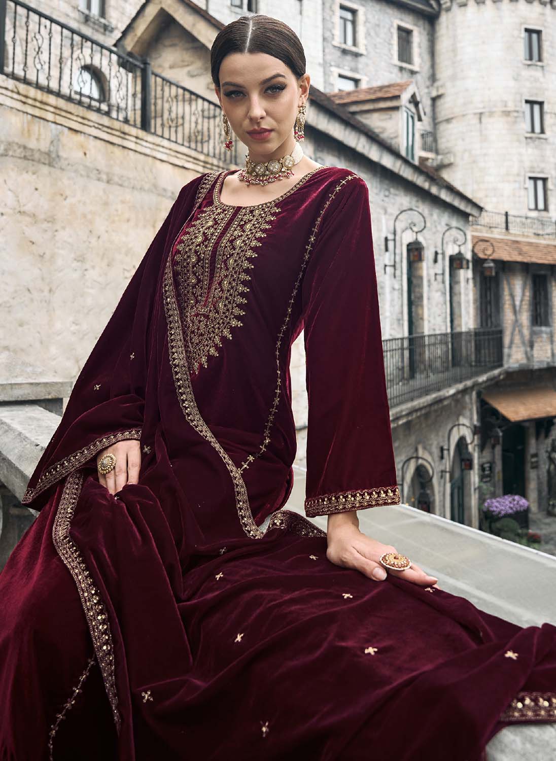 Kilory Party Wear Red Unstitched Velvet Suit Dress Material for Women