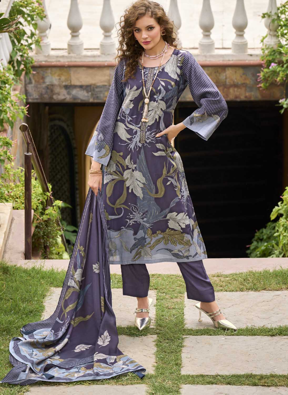 - Dupatta: Pure Viscose Muslin Digital and Foil Print