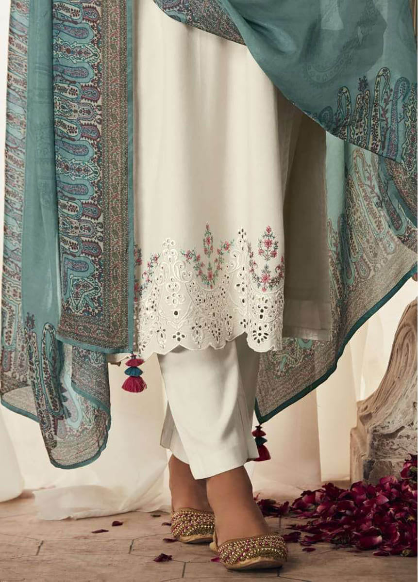 Kimora Pure Pashmina Off-White Winter Suit Dress Material with Embroidery