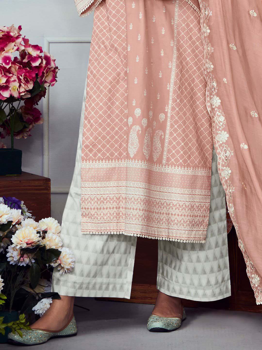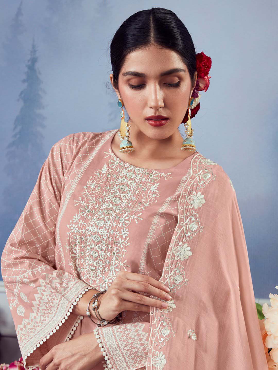 Kimora Peach Unstitched Cotton Suit Dress Material for Women