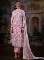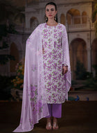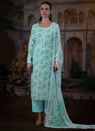 Light Blue Pure Cotton Unstitched Suit Set Material with Chiffon Dupatta