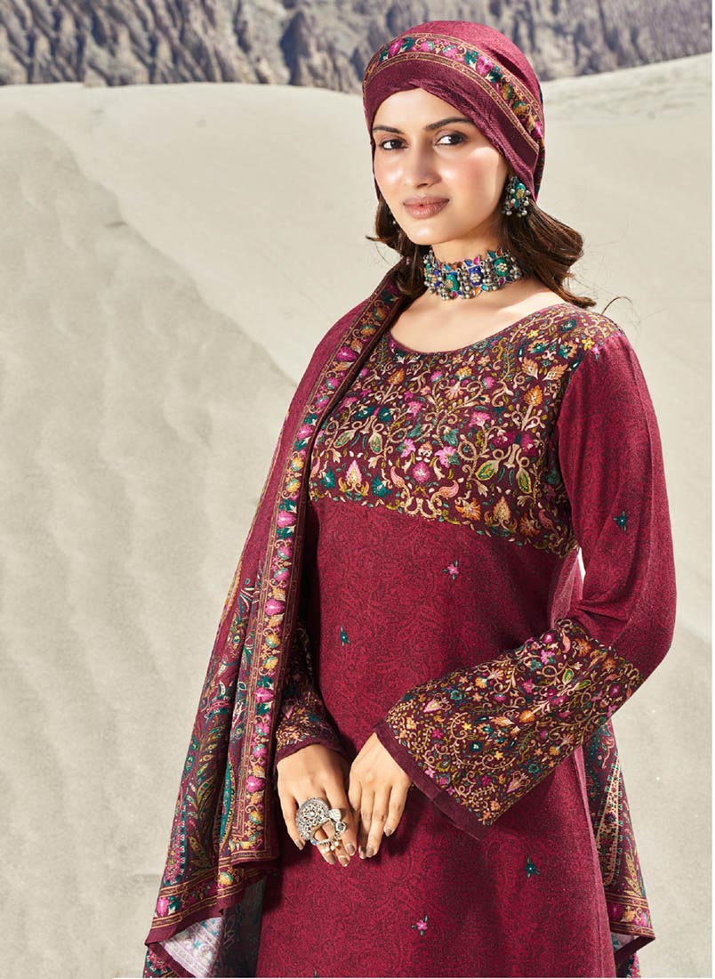 Maroon Pashmina Winter Un-Stitched Suit Dress Material for Women
