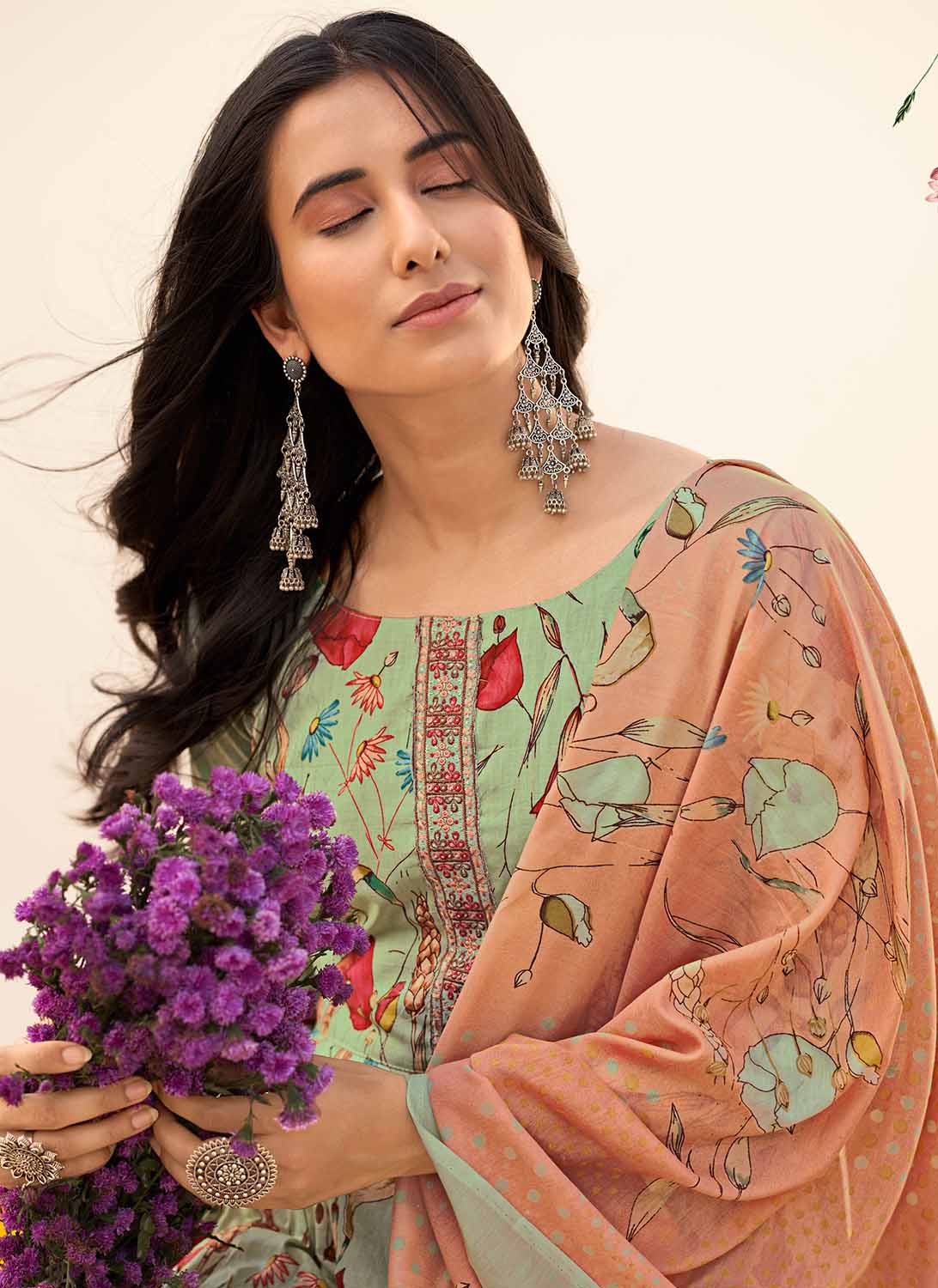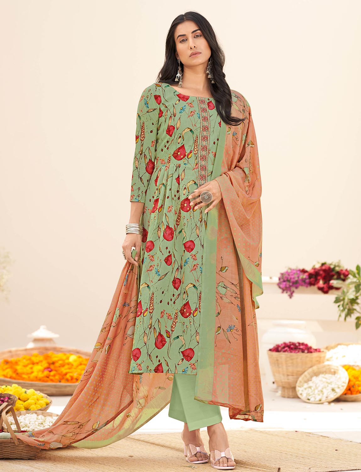 Masakali Unstitched Pure Cambric Cotton Suit Set Green