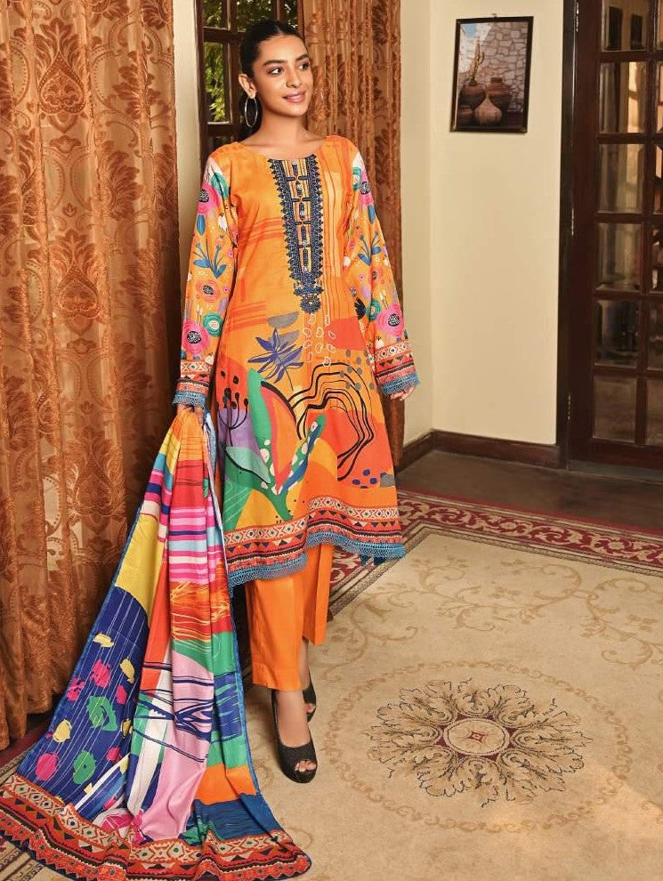 Mirha Printed Unstitched Lawn Pakistani Suit with Embroidery