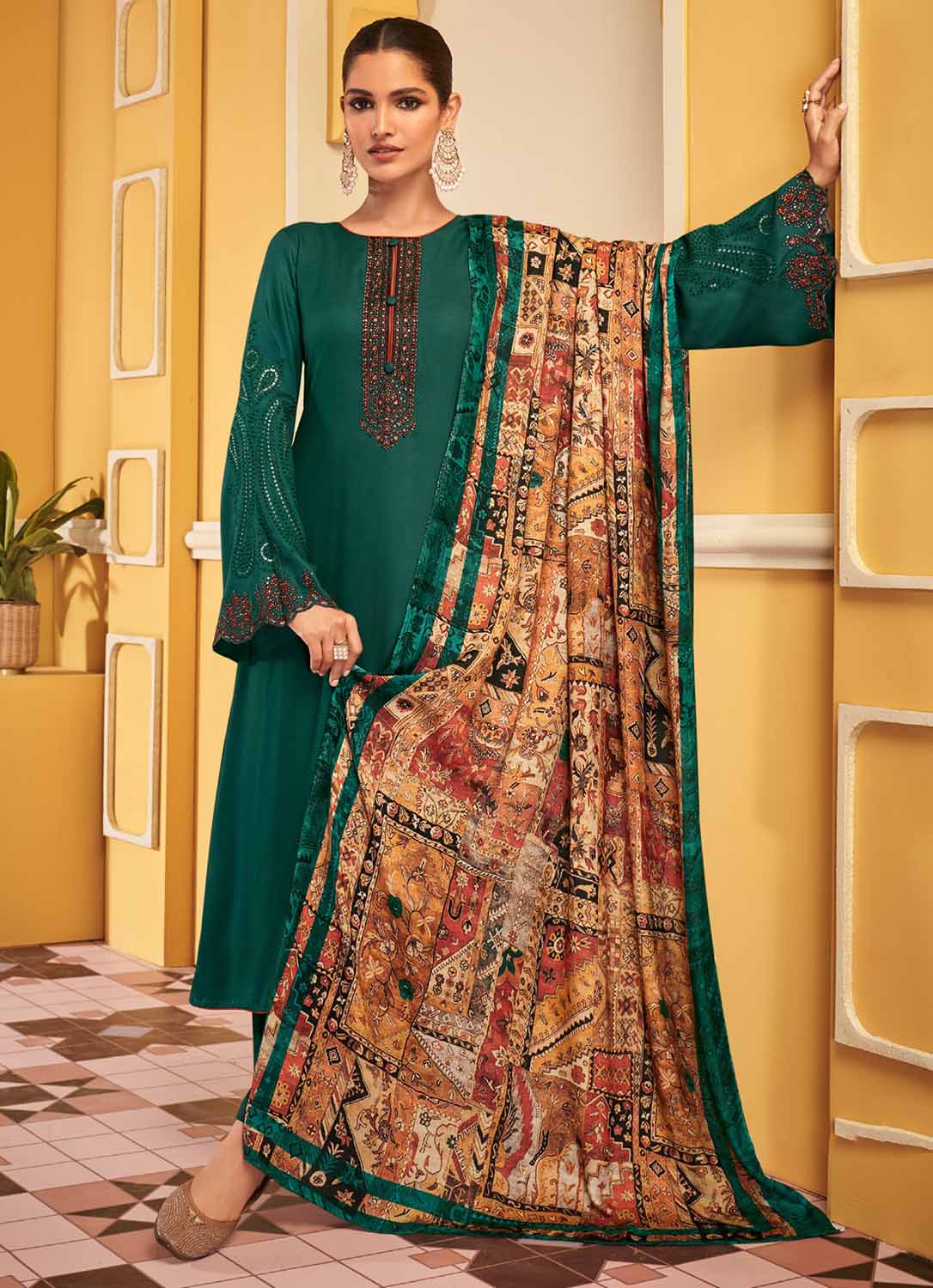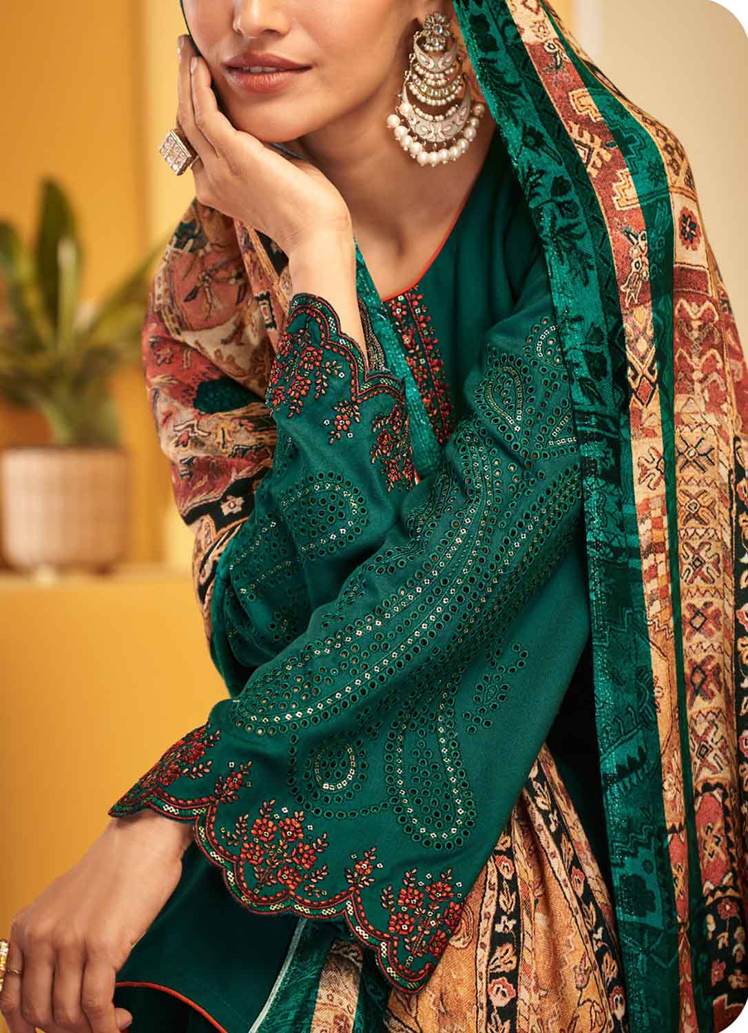 Mumtaz Arts Green Unstitched Pashmina Winter Suit with Embroidery