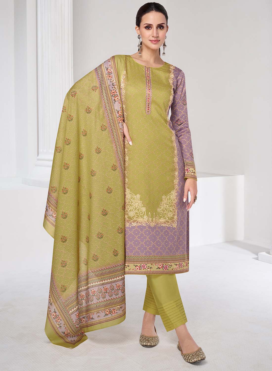 Mumtaz Arts Pure Cotton Satin Unstitched Printed Suit with Embroidery