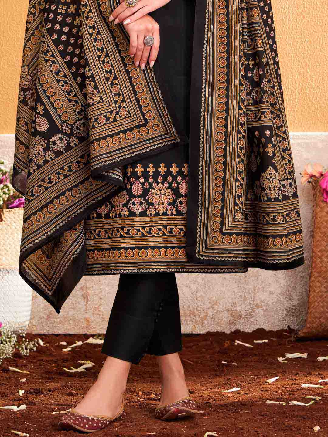 Mumtaz Arts Pure Cotton Satin Unstitched Salwar Suit Black