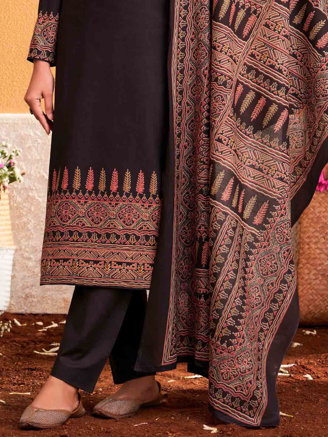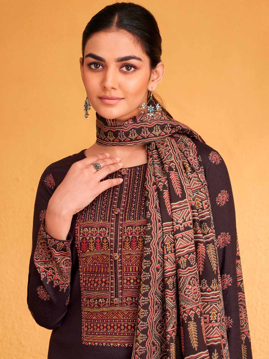 Mumtaz Arts Pure Cotton Satin Unstitched Salwar Suit Dark Brown