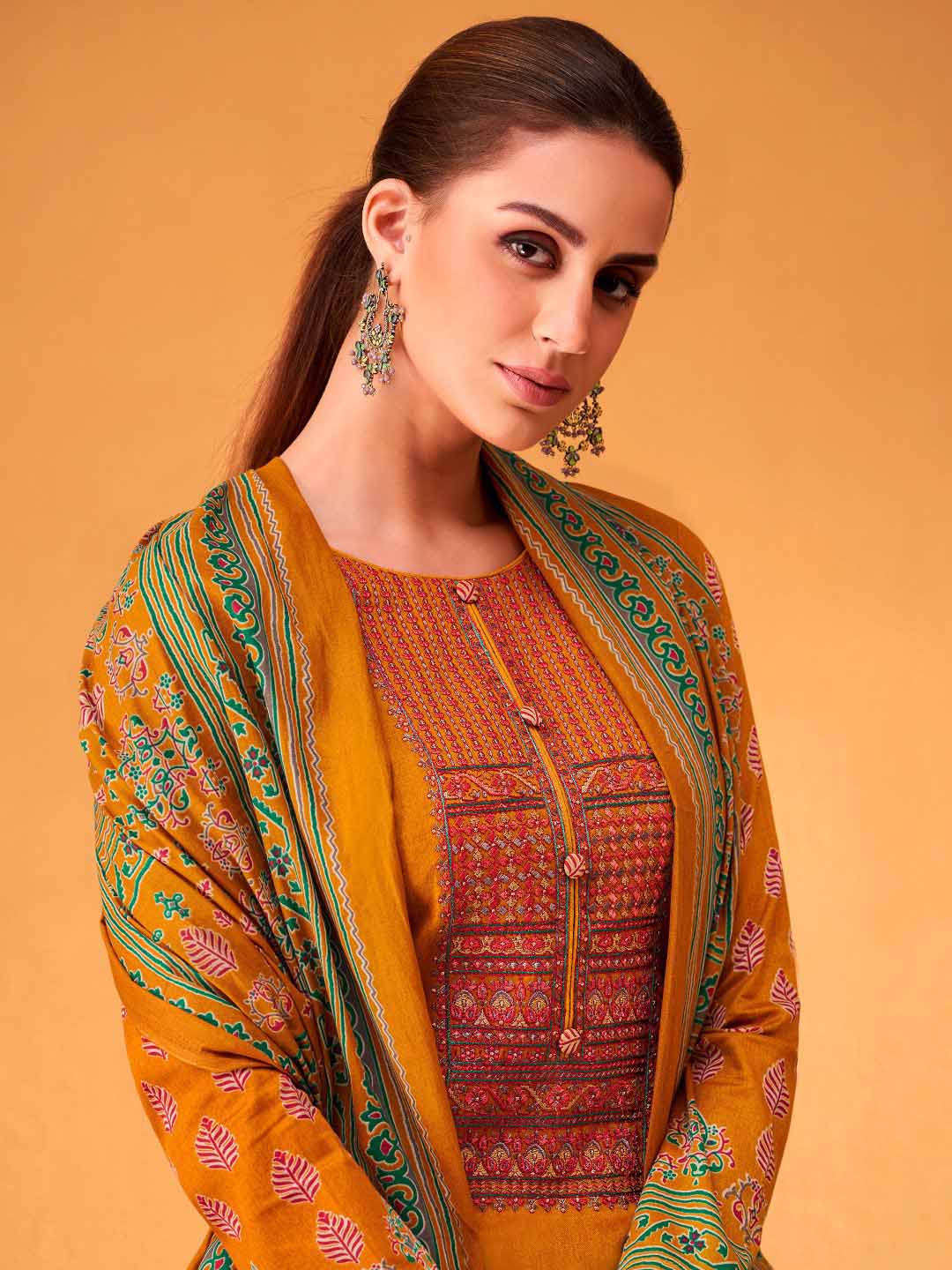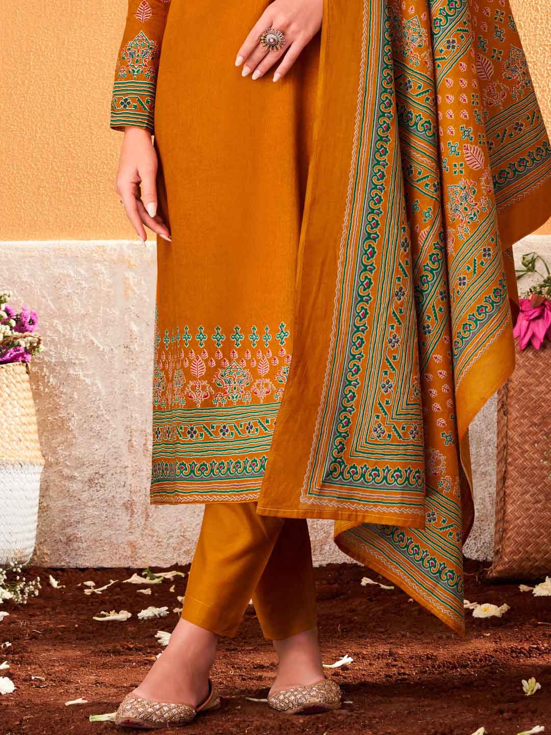 Mumtaz Arts Pure Cotton Satin Unstitched Salwar Suit Mustard