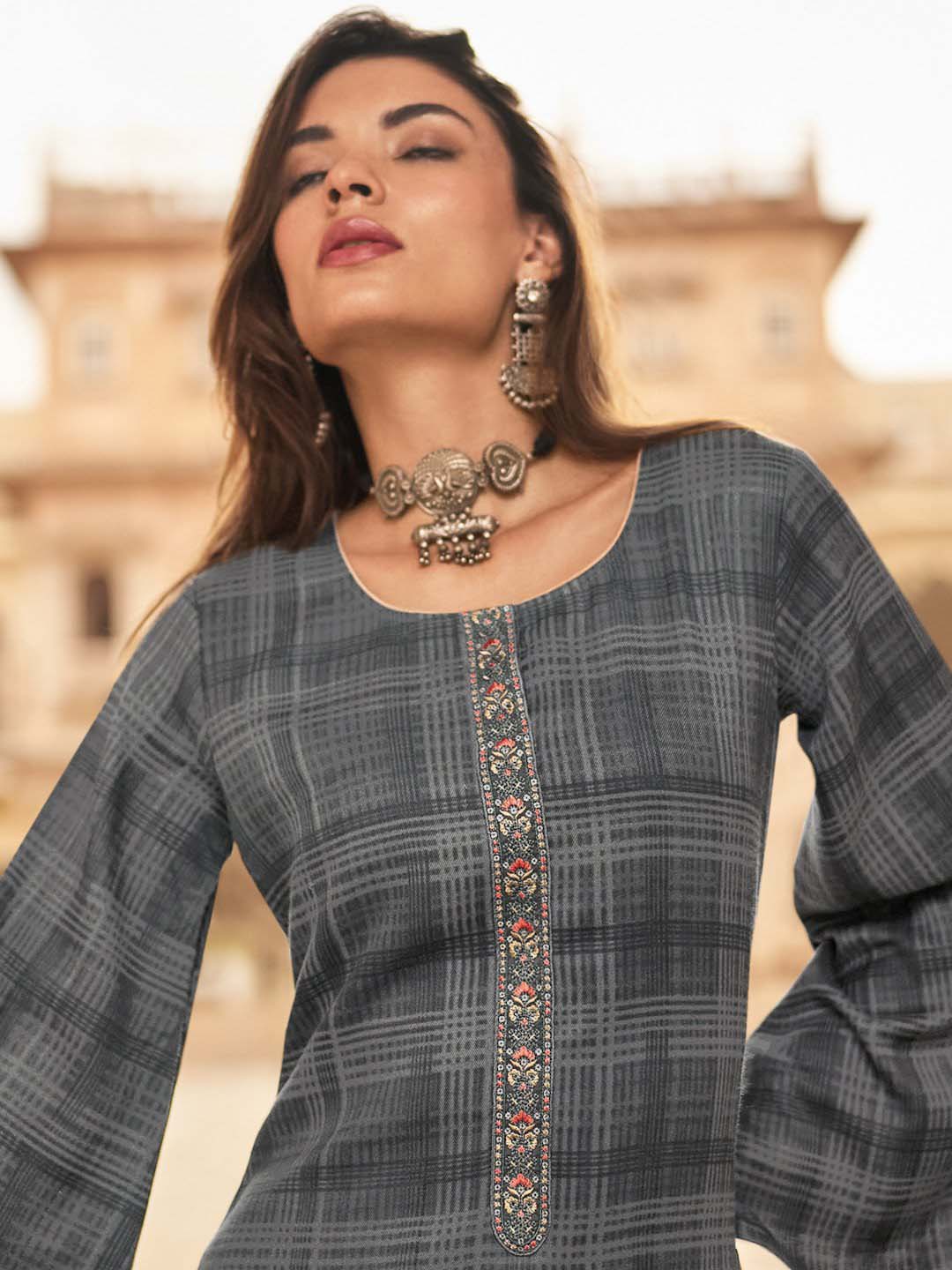 - Elegant embroidery neck and Daman embroidery