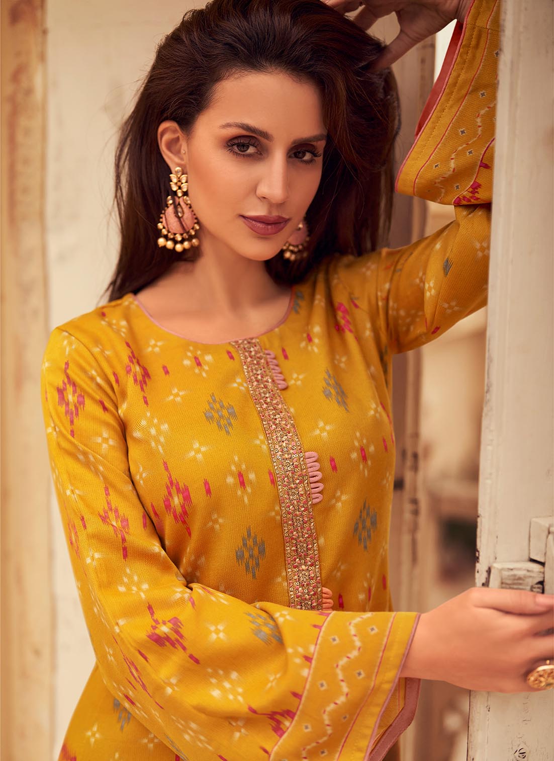 Mumtaz Arts Women's Pashmina Yellow Unstitched Winter Suit Material