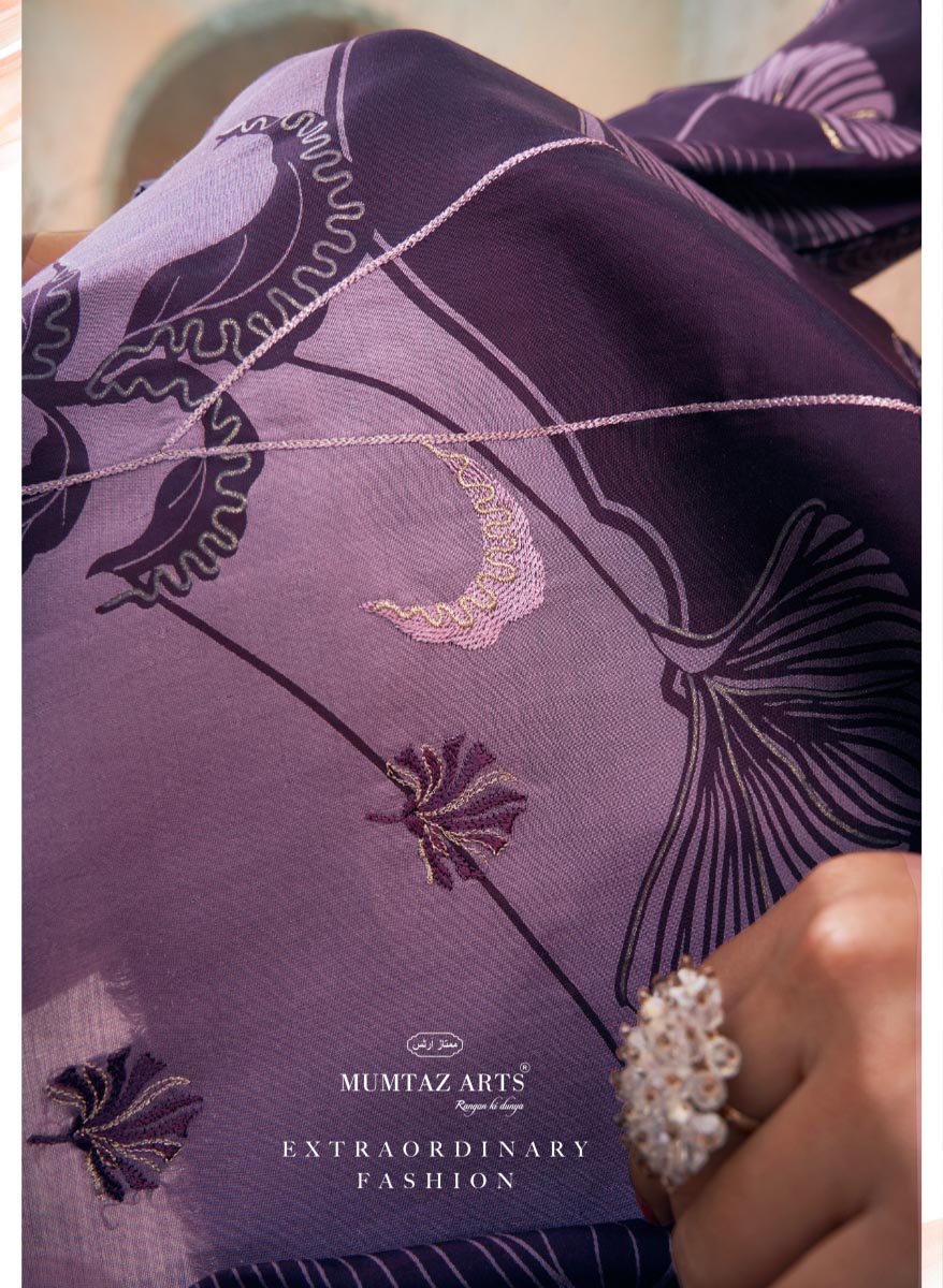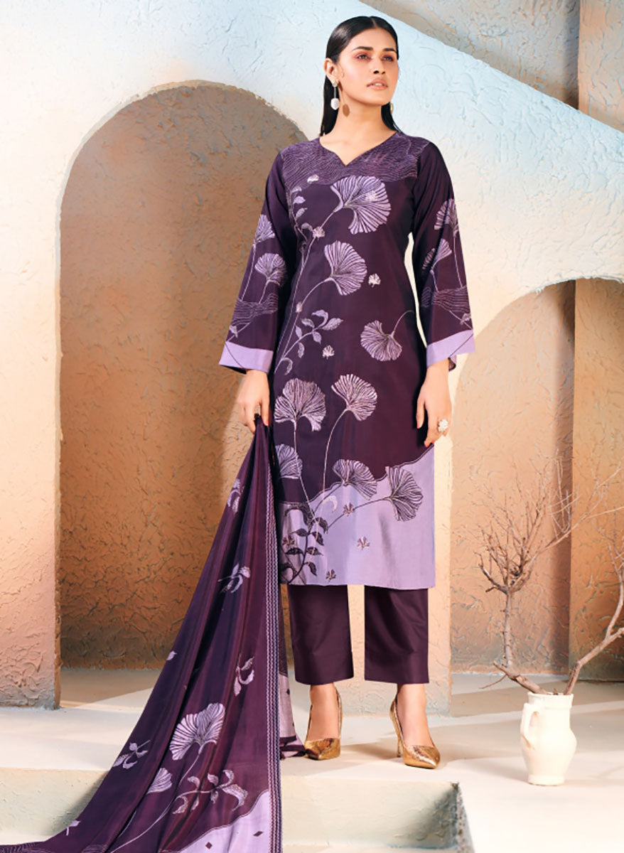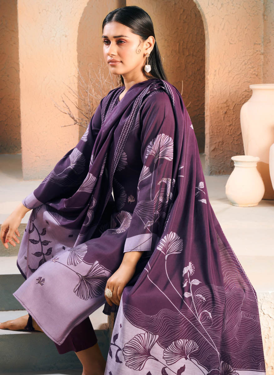 Mumtaz Arts Women's Printed Purple Unstitched Muslin Salwar Suit Fabric