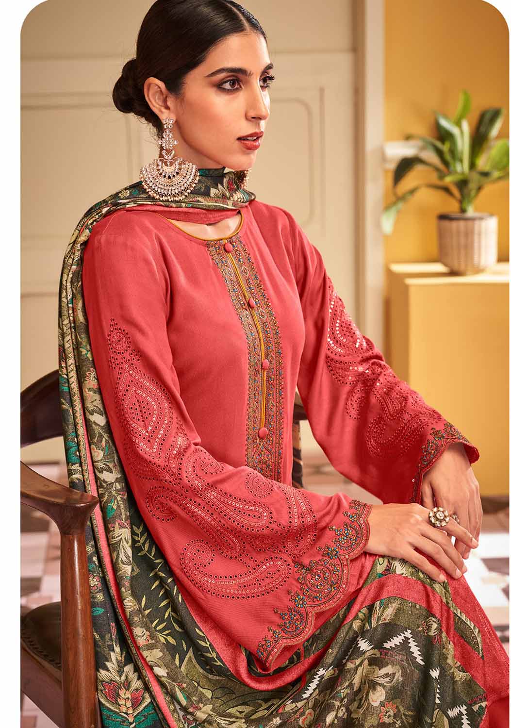 Mumtaz Arts Women's Unstitched Pashmina Winter Suit with Embroidery