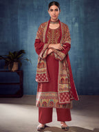 Navy Blue Pashmina Twill Embroidered Unstitched Winter Suits for Women