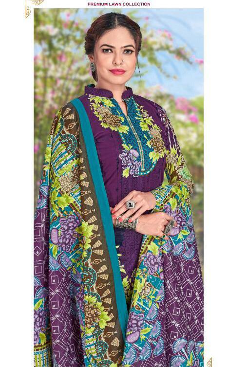 Pakistani Lawn Cotton Unstitched Suits Dress Material Purple