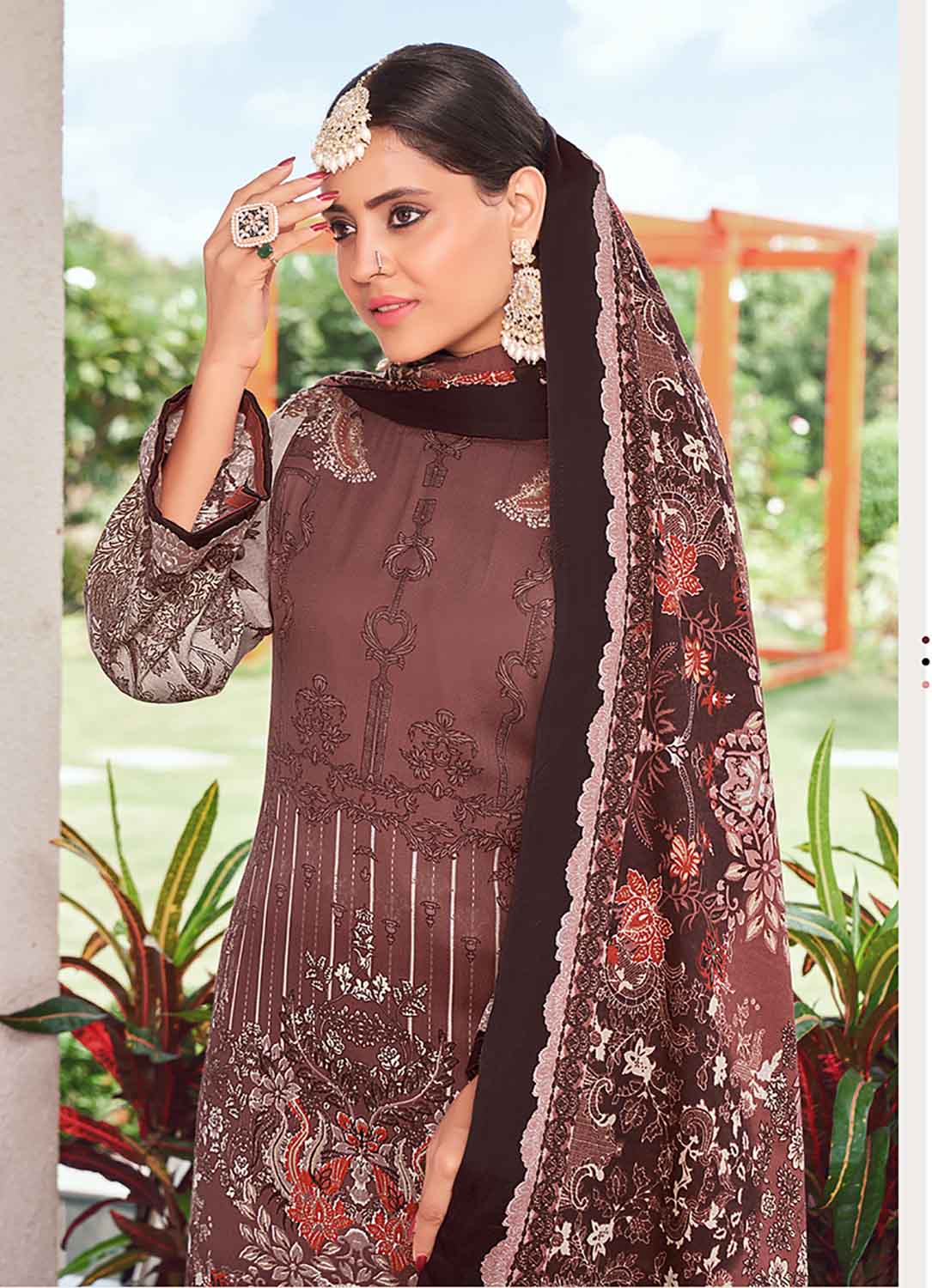 Pakistani Print Brown Pashmina Winter Suit Dress Material for Ladies