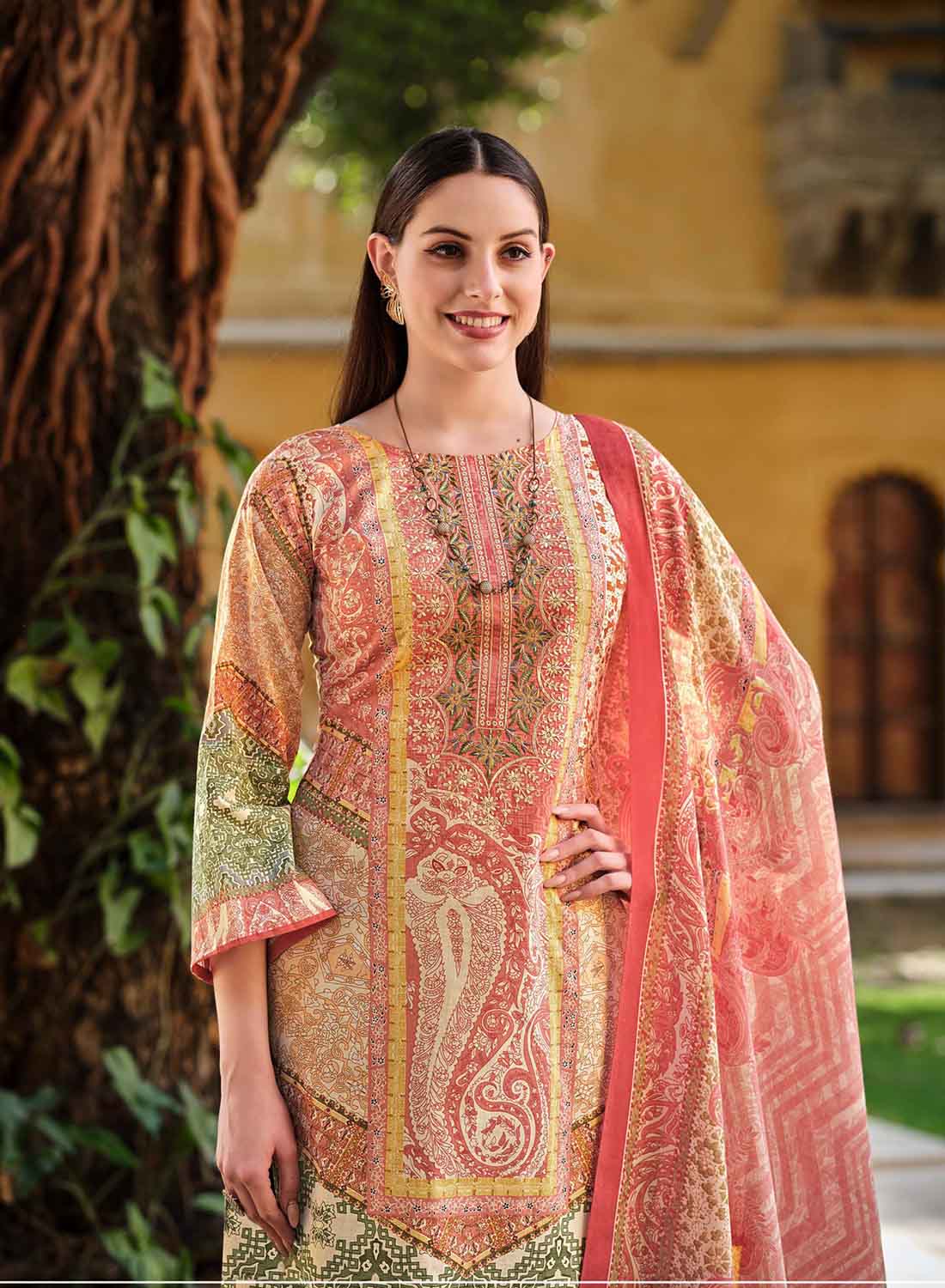 Pakistani Print Unstitched Cotton Suit Dress Material with Dupatta