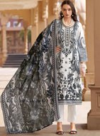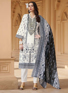Pakistani Print White Unstitched Pure Cotton Suit Set Material with Embroidery