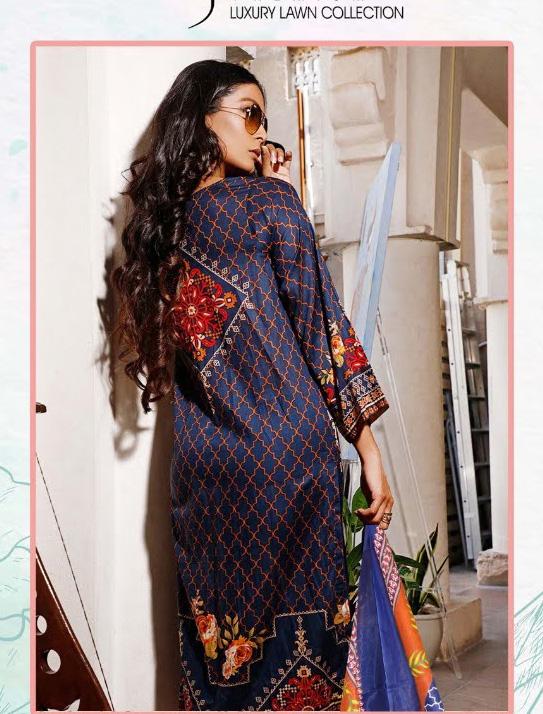 Pakistani Style Unstitched Blue Lawn Cotton Suit Material