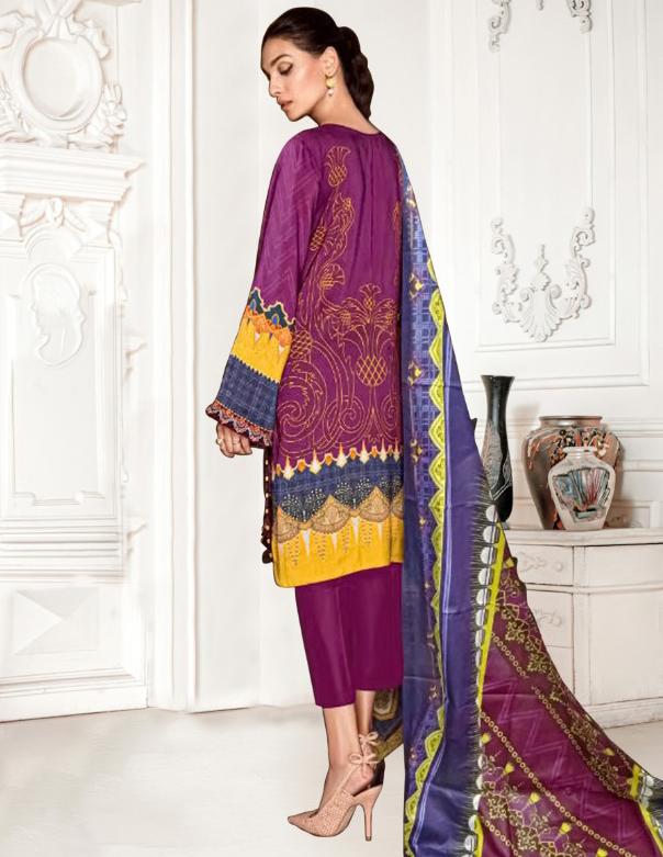 Pakistani Unstitched Purple salwar kameez Cotton Dress Material