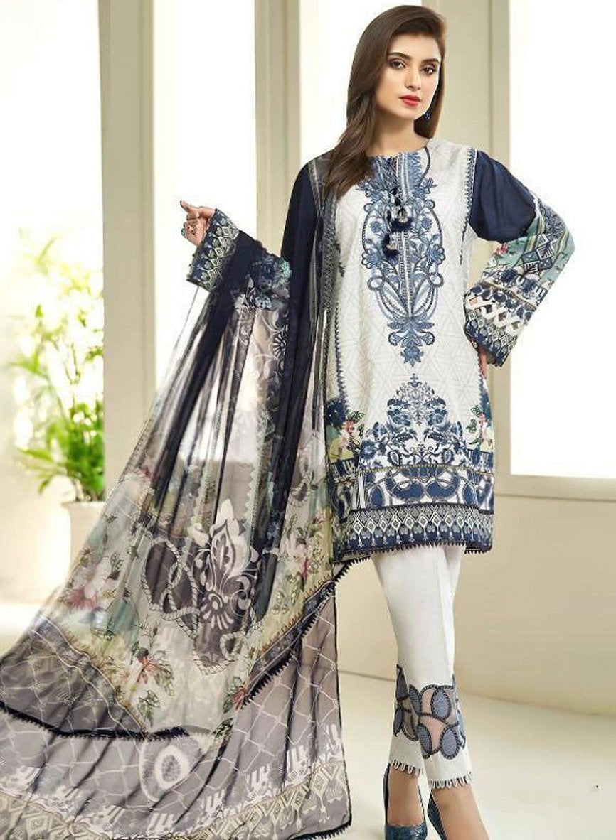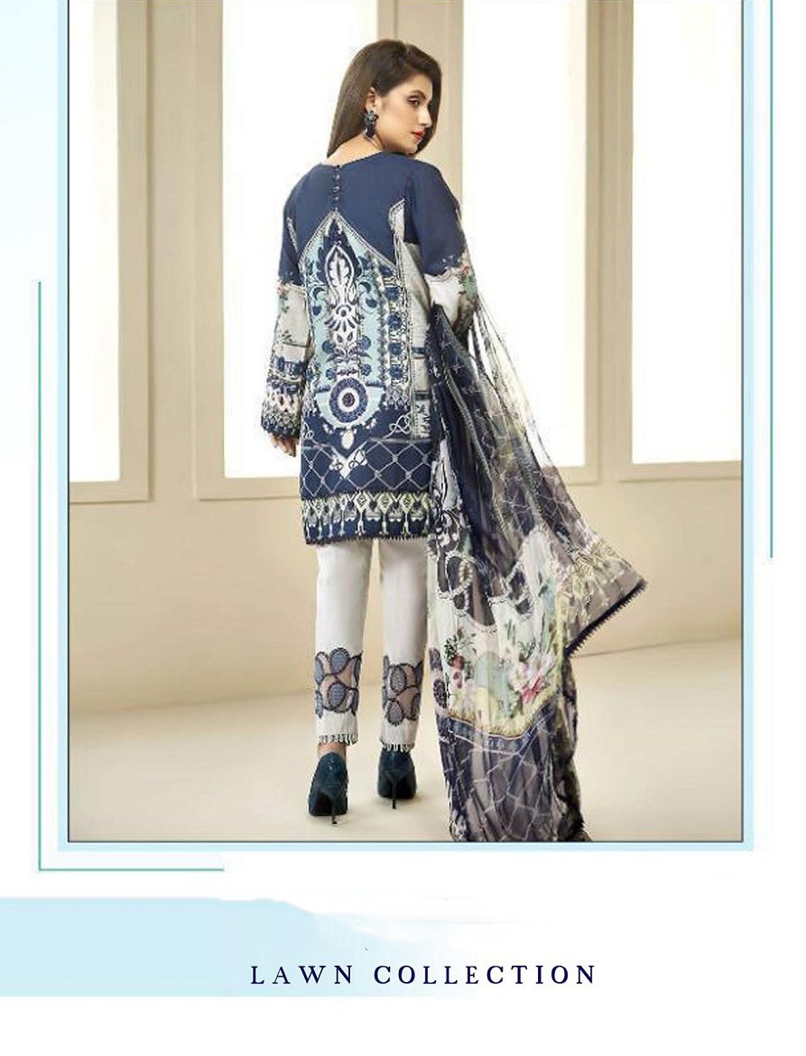 Blue Pakistani Lawn Cotton Unstitched Salwar Kameez Suit