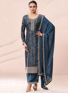 Party Wear Green Unstitched Chinon Suit Material Print with Embroidery