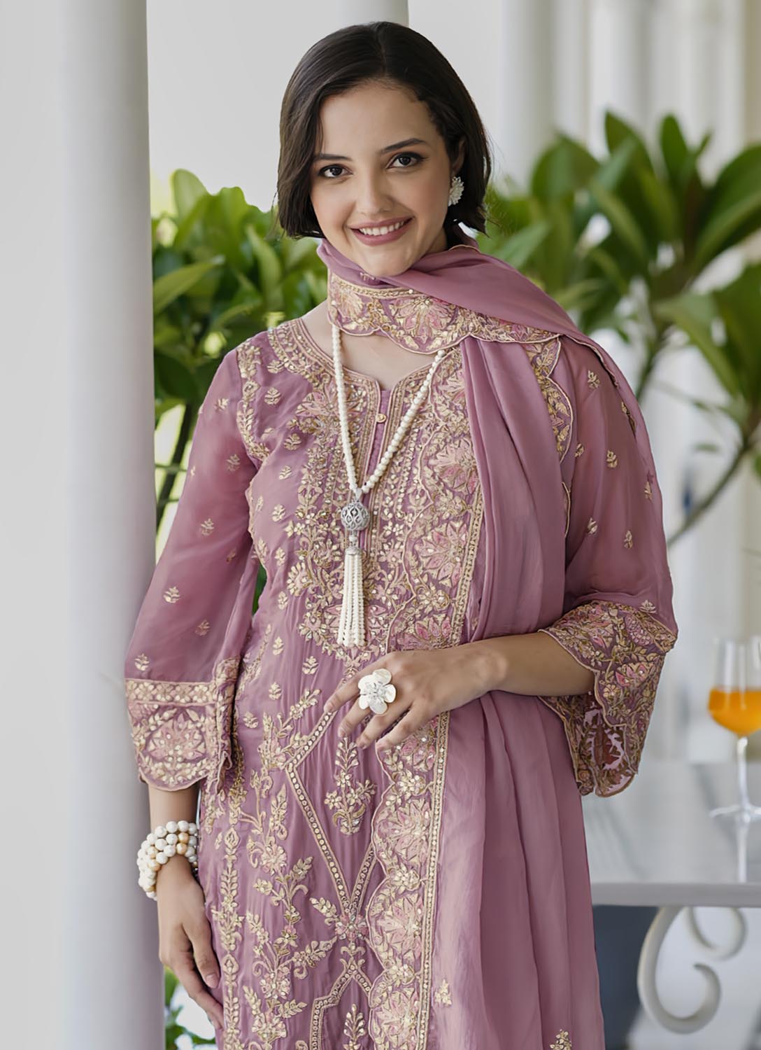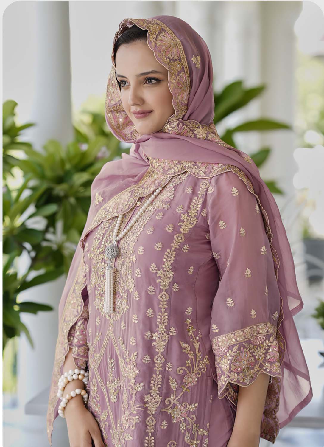 Party Wear Pink Organza Semi Stitched Salwar Suit with Embroidery