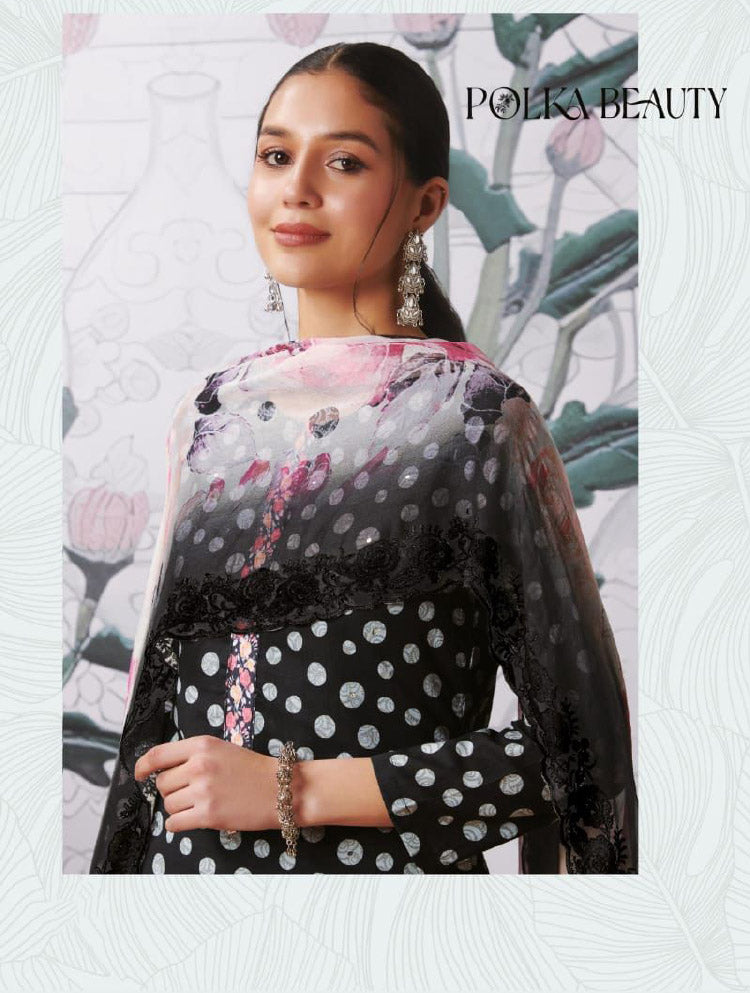 Party Wear Pure Cotton Lawn Unstitched Women Suits Fabric Black