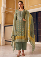 Party Wear Pure Muslin Green Unstitched Salwar Suit Dress Material