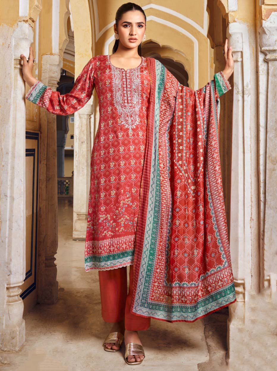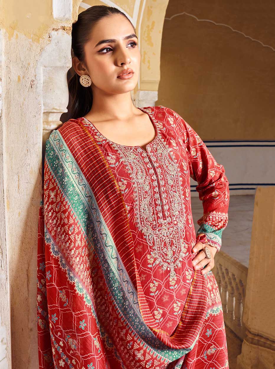 Party Wear Pure Muslin Red Unstitched Salwar Suit Dress Material